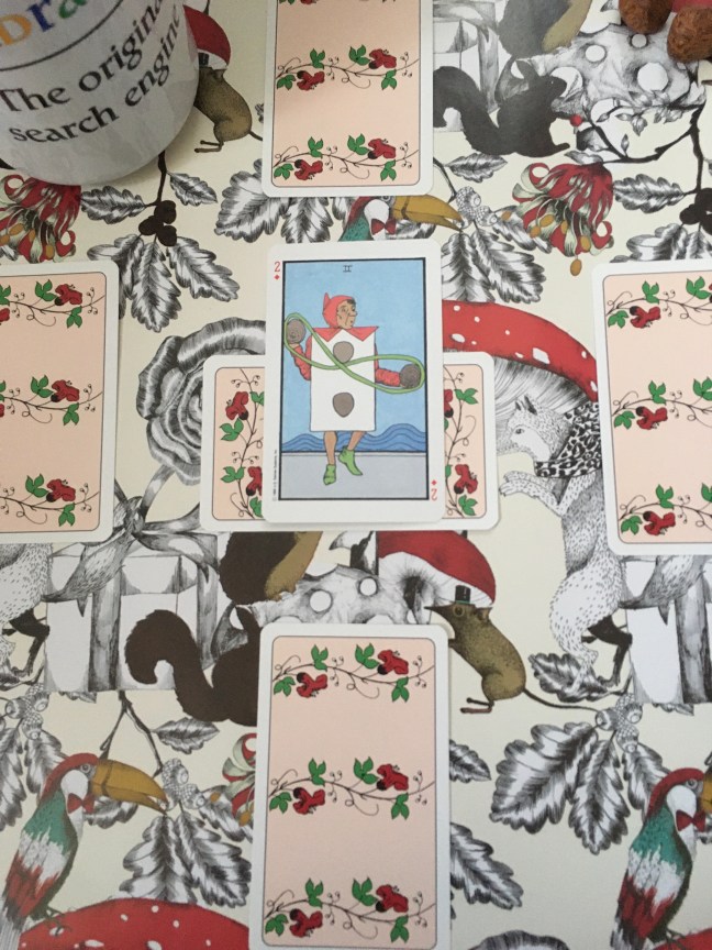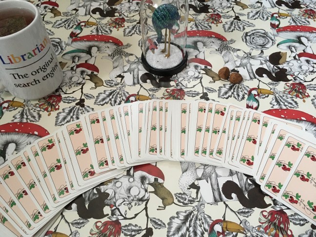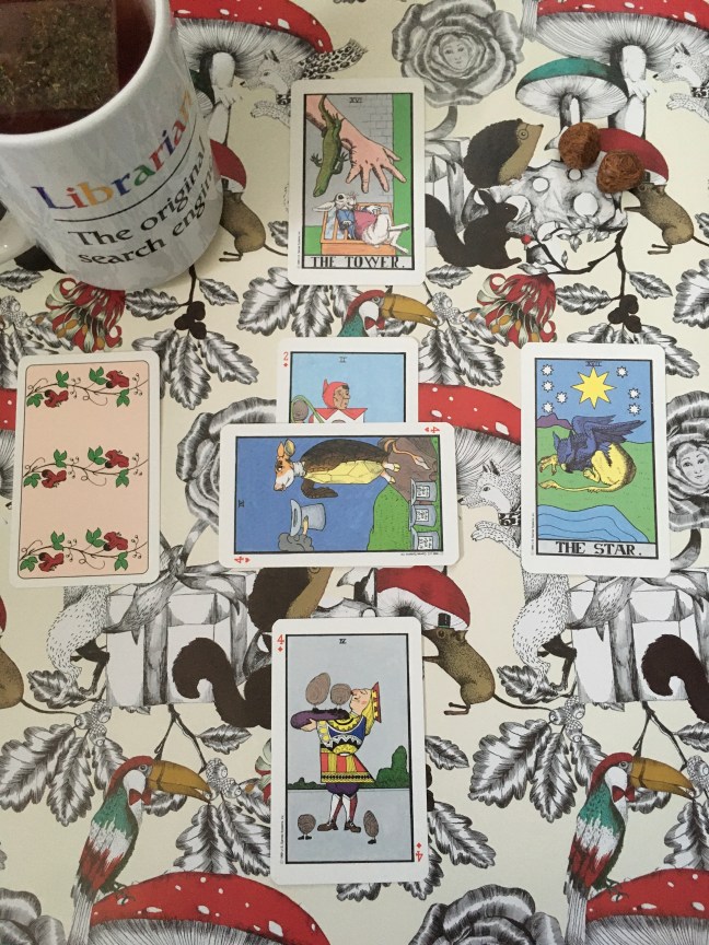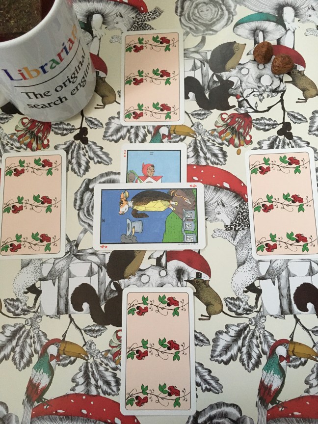 I’ve opted to work with a standard ten-card spread, since getting a new job with the book about to come out means I have a bit more going on than usual! As the Abbeys, who created this deck, describe the positions of the cards in the spread, they represent: