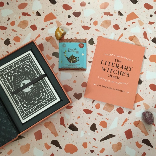 In today’s Witchtember Tea & Tarot, I’m going to be working with my favorite deck to consult whenever I’m specifically thinking about my writing: The Literary Witches Oracle by Taisia Kitaiskaia and Katy Horan. The deck is tied to their book Literary Witches, and together they make a beautiful set to gift to any literary witch in your life! (I am not getting commissions to say that, I just really love this deck.)