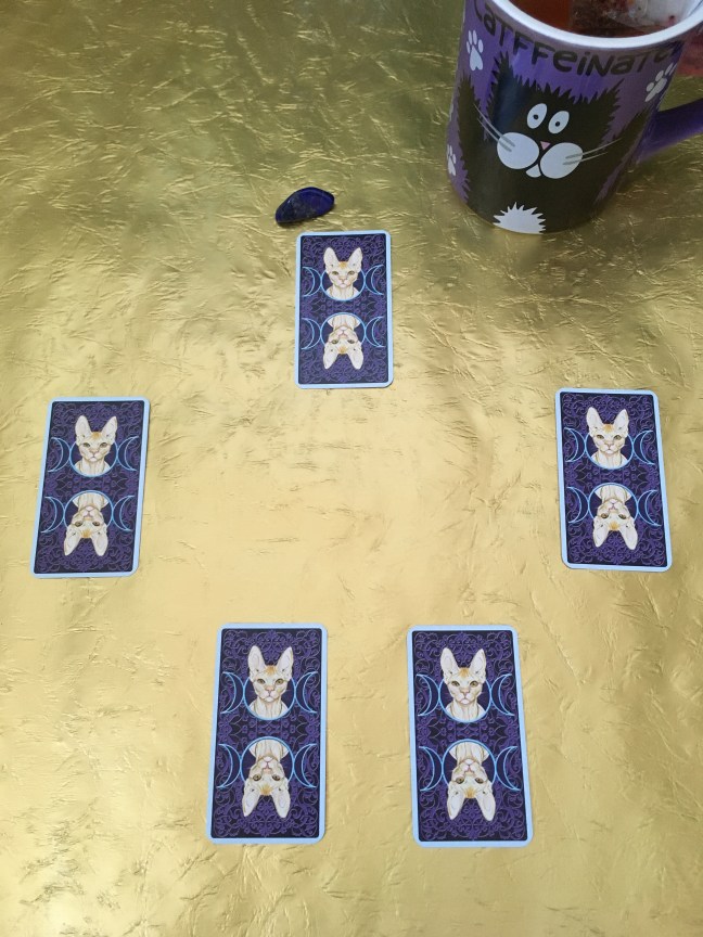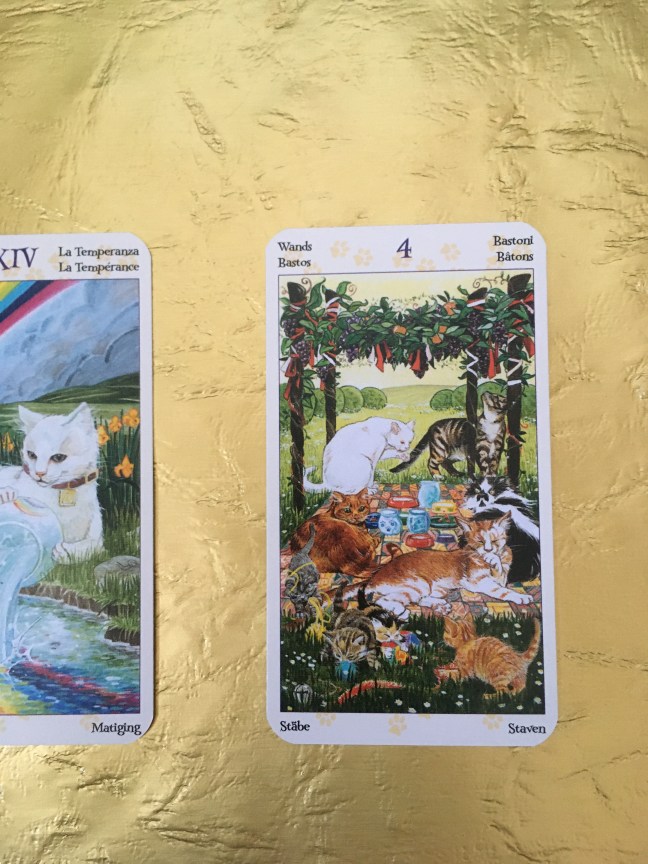 For this week’s reading, I’m using the Tarot of Pagan Cats, an adorable little deck created by Lo Scarabeo. With four floofy felines roaming my home, I just had to include this deck in my Witchtember divination!